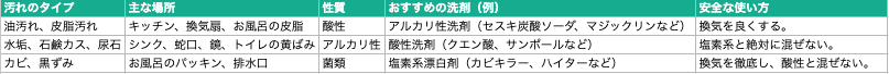 - キッチン、風呂、トイレの汚れが蓄積しており、通常の掃除では落ちない状態である。