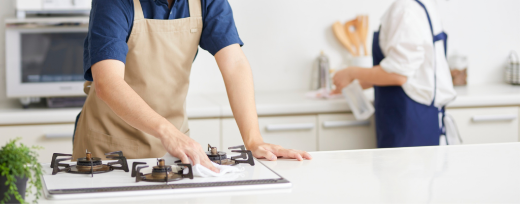 セスキ炭酸ソーダやアルカリ電解水は、二度拭きが楽なため、キッチン掃除に最適です。