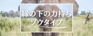 - ゾウタイプは、カリスマ性で周りを引っ張るタイプではありませんが、その責任感と堅実さで、周りからの信頼を勝ち取ります。